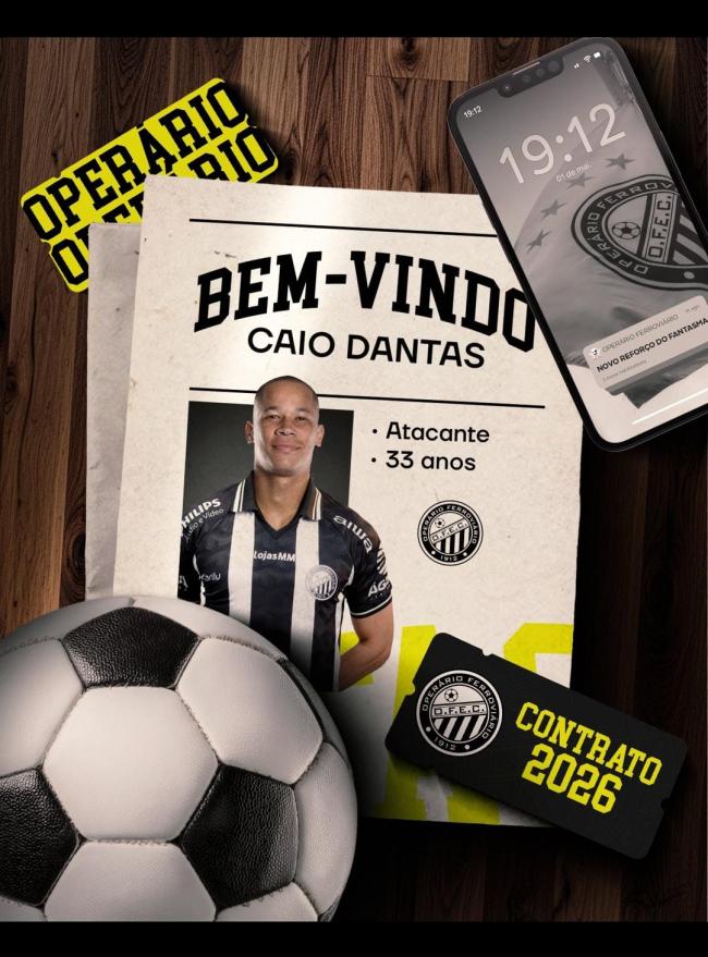 O lateral direito Maguinho é outro que chega para reforçar o alvinegro. Lateral direito, estava no América MG, onde inclusive atuou na estreia do time mineiro na Série B contra o Goiás. Finalmente, oriundo do Novorizontino, o atacante Caio Dantas(foto), também foi anunciado e fica no Operário até o final da temporada.